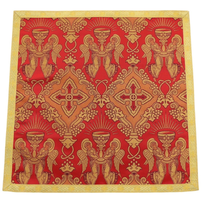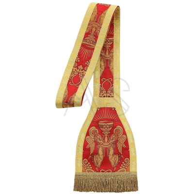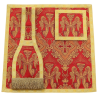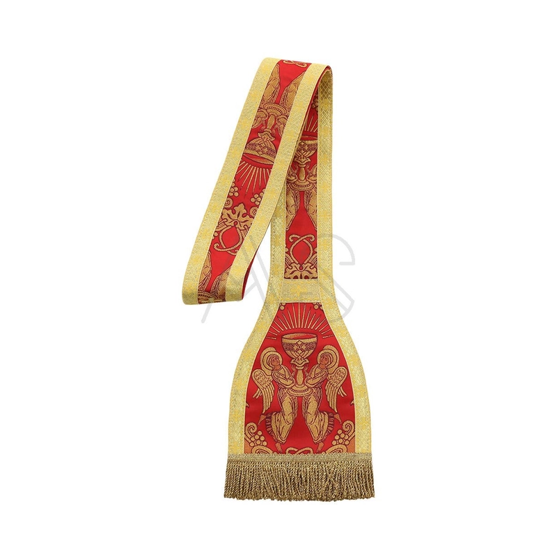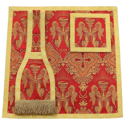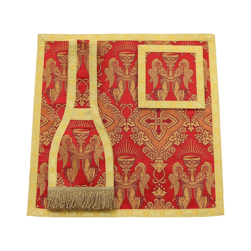 Acompanha uma estola, manípulo, bolsa corporal e véu de cálice.