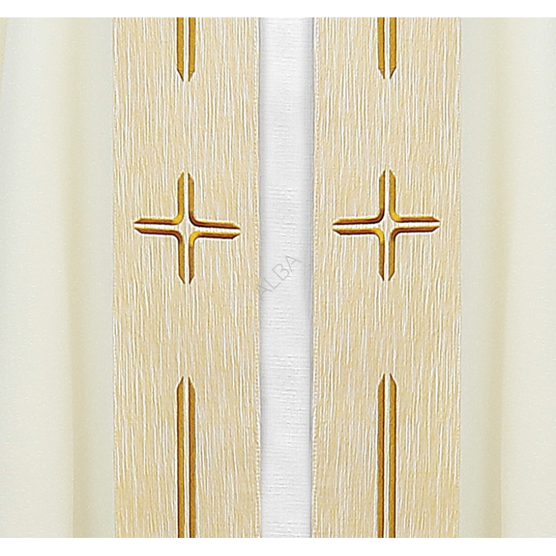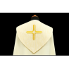 Véu umeral litúrgico bordado na parte de trás em alto relevo e linha dourada de altíssima qualidade.