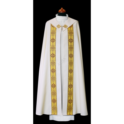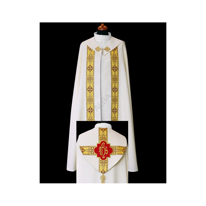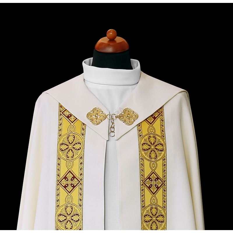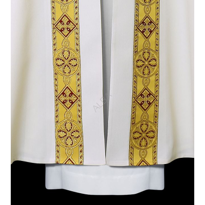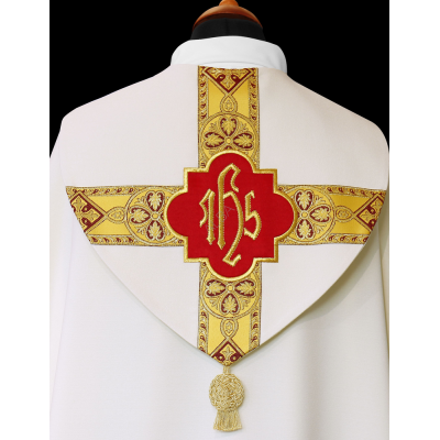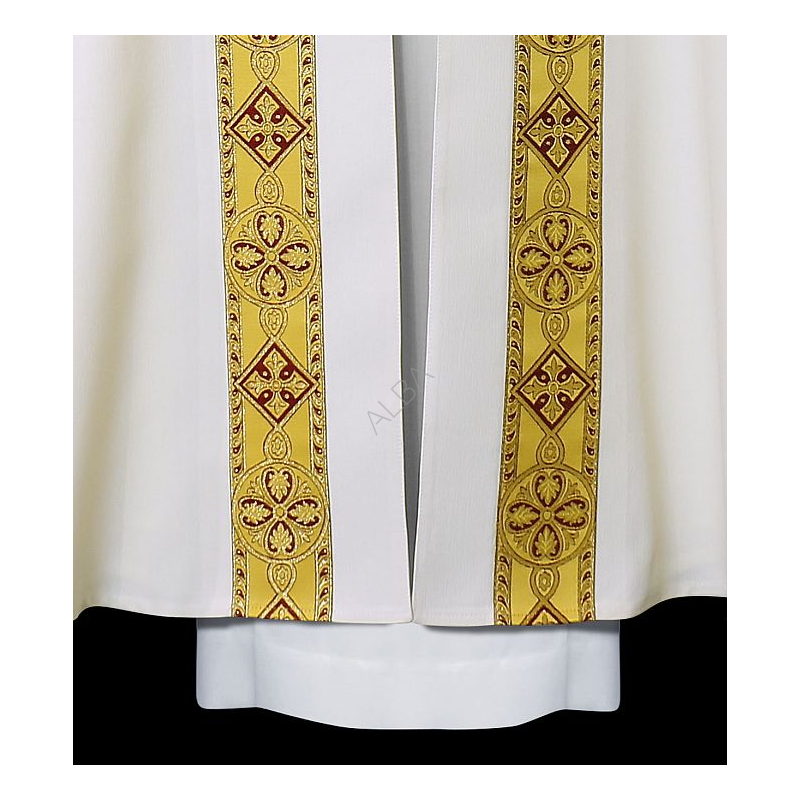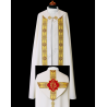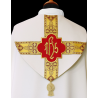 Casula semigótica bordada em alto relevo com listra de tecido em veludo.