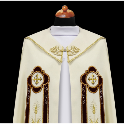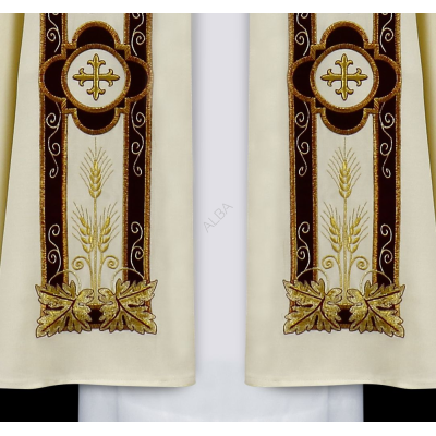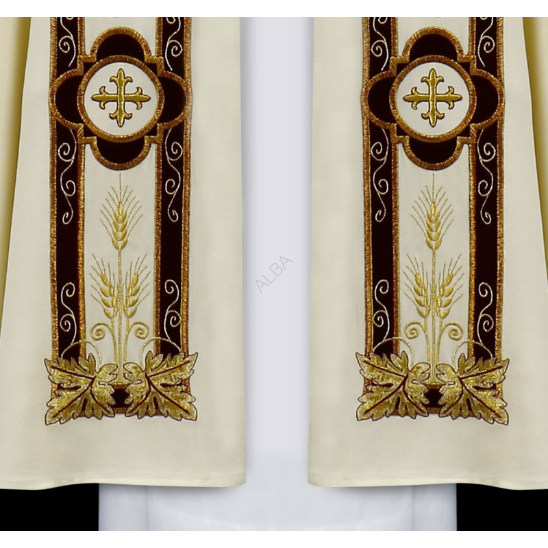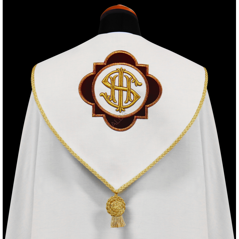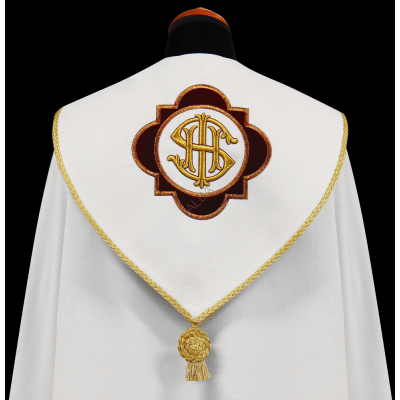 Véu umeral litúrgico bordado na parte de trás em alto relevo de altíssima qualidade.
