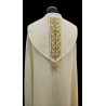 Casula semigótica bordada em alto relevo com listra de tecido em veludo.