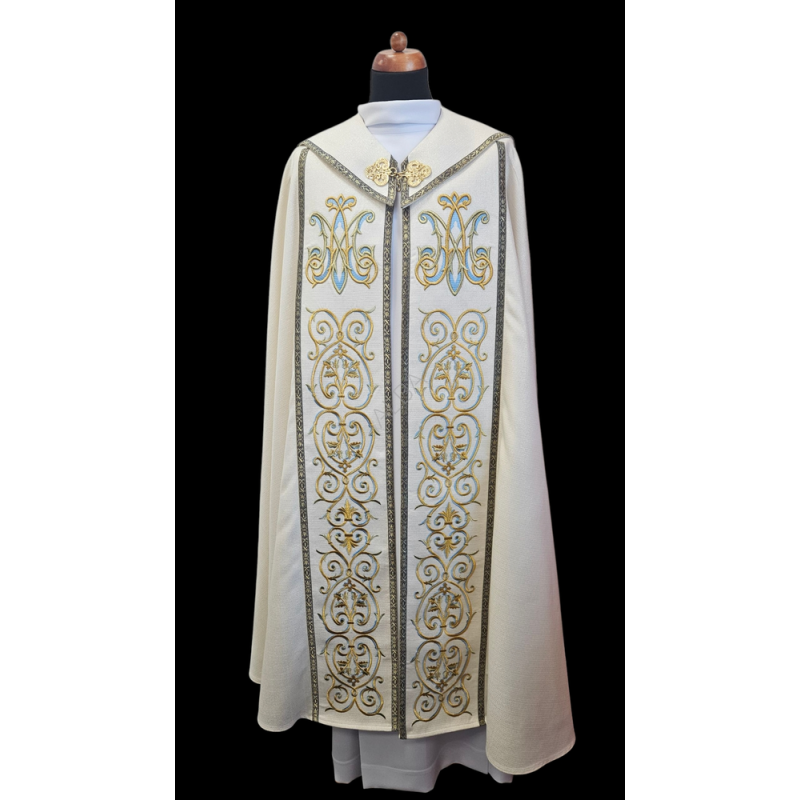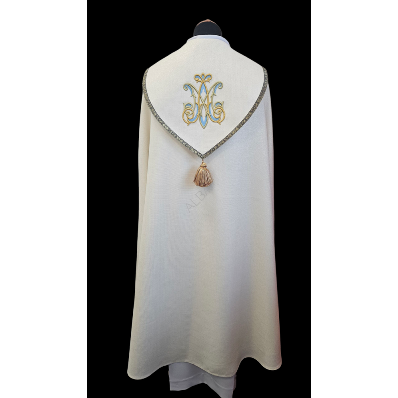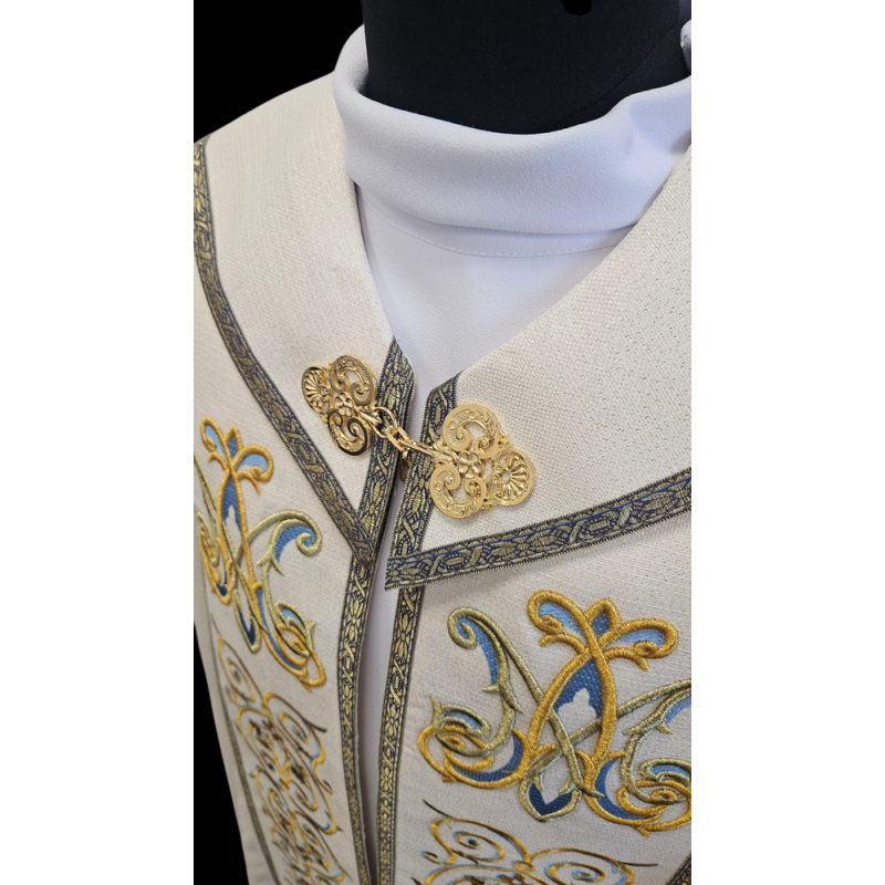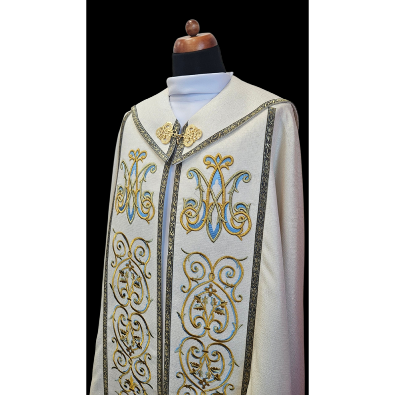Casula gótica com bordado na frente e atrás e acabamento em cetim.