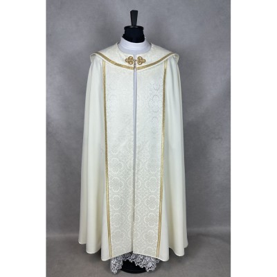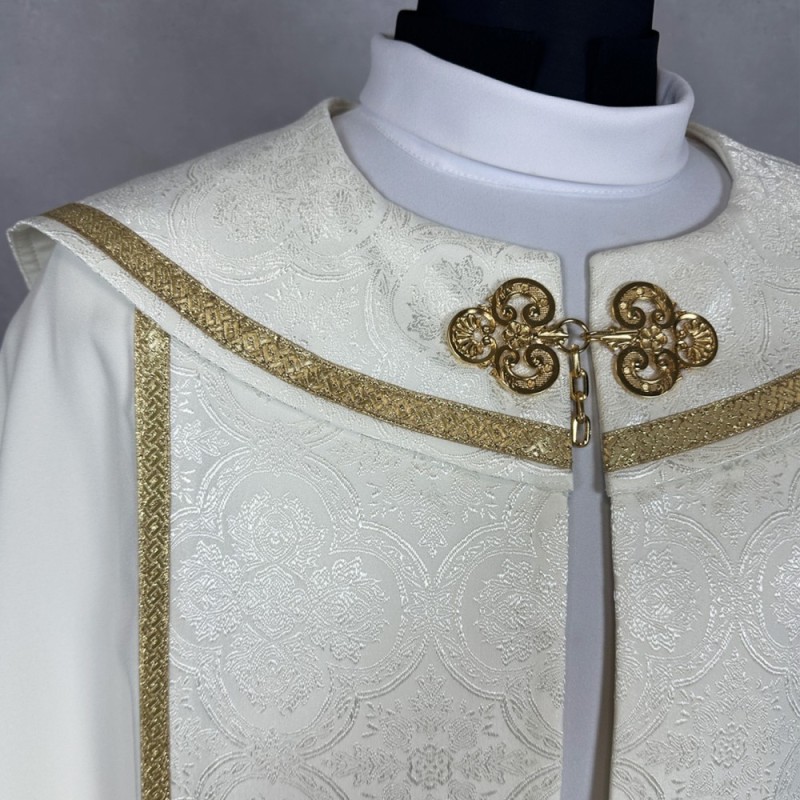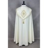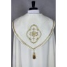 Casula romana bordada em alto relevo com linha dourada.
