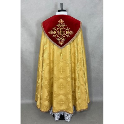 Casula gótica com fio metalizado dourado na frente e atrás de altíssima qualidade.