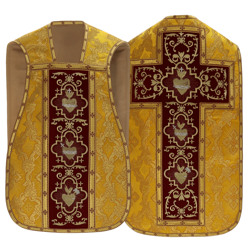 Casula Romana no tecido de Seda com veludo. Com forro de cetim.