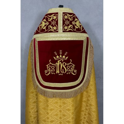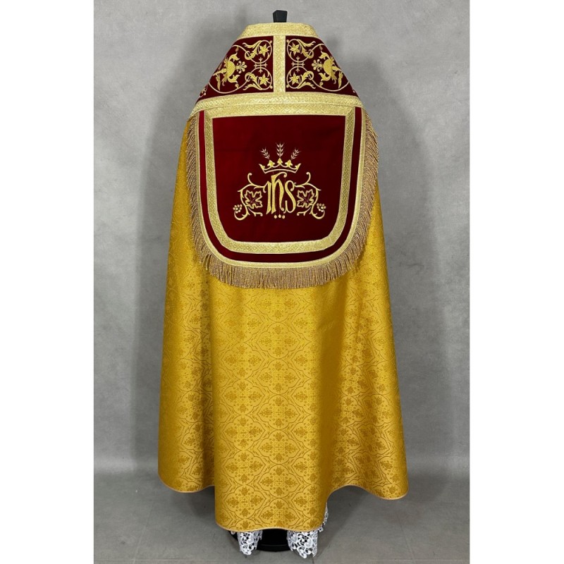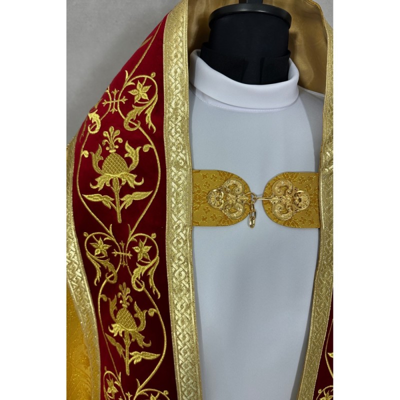 Casula semigótica no tecido Adamascado com bordado de altíssima qualidade.