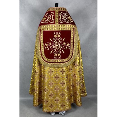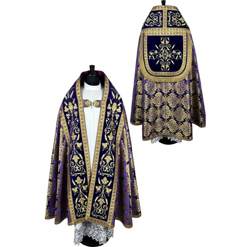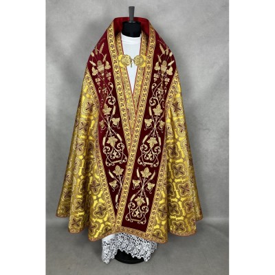 Casula Romana no tecido de Seda com veludo. Com forro de cetim.