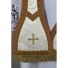Estola diaconal bordada em alto relevo com linha dourada de altíssima qualidade.