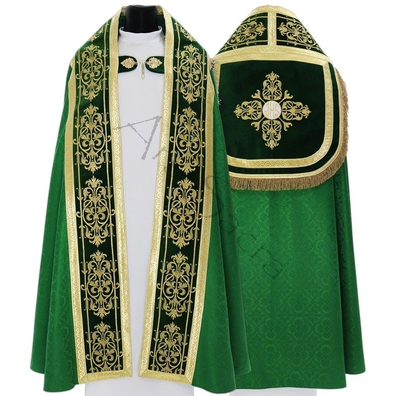 Capa de Asperge romana com bordado em alto relevo. Tecido Adamascado.