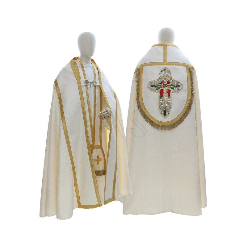 Casula semigótica bordada na frente e atrás em alto relevo com linha dourada de altíssima qualidade.