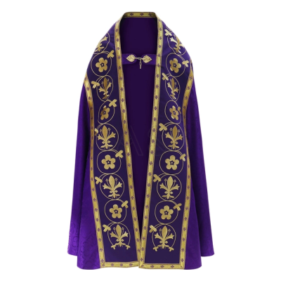 Casula gótica com bordado na frente e atrás.