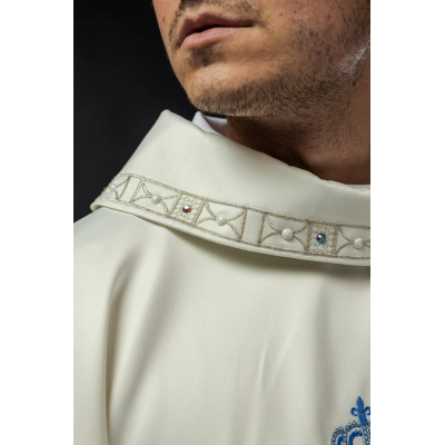 Casula gótica com bordado na frente e atrás e acabamento em cetim.