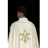 Casula gótica Mariana bordada na frente e atrás em alto relevo com fios dourados.