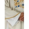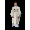 Dalmática gótica decorada com listras bordadas. Tecido Adamascado.