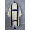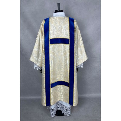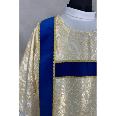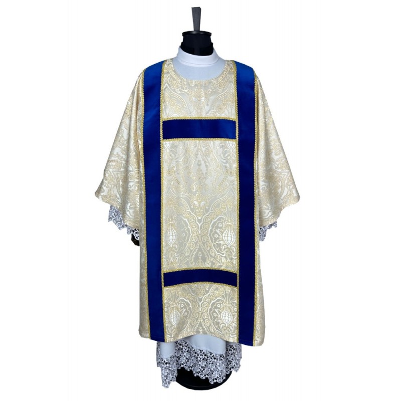 Dalmática gótica decorada com fitas. Tecido Adamascado.