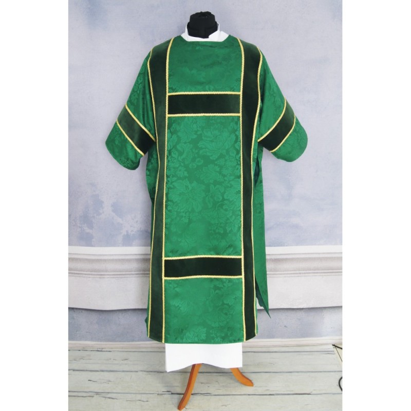 Casula gótica bordada na frente e atrás em alto relevo com fio dourado de altíssima qualidade.