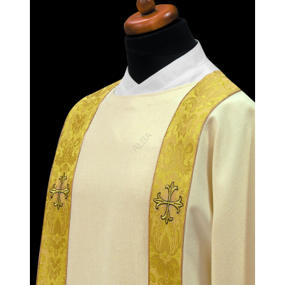 Estola diaconal bordada em alto relevo com linha dourada de altíssima qualidade.