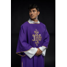 Dalmática gótica decorada com fitas. Tecido Adamascado.