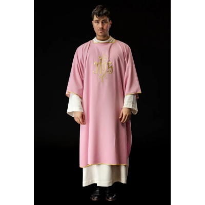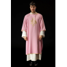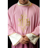 Dalmática gótica decorada com fitas. Tecido Adamascado.