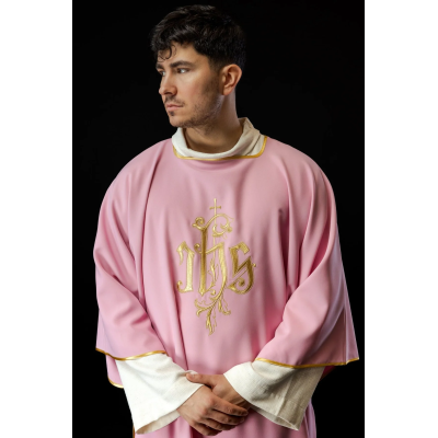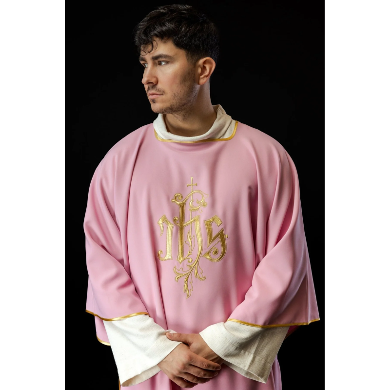 Túnica bordada com renda nas mangas e barra com letras JHS de altíssima qualidade.
