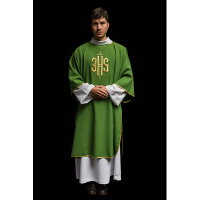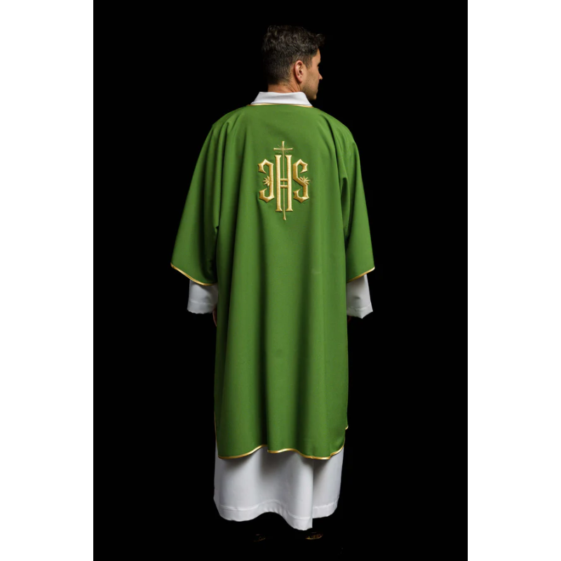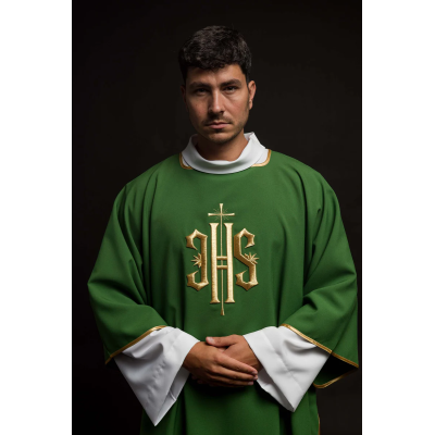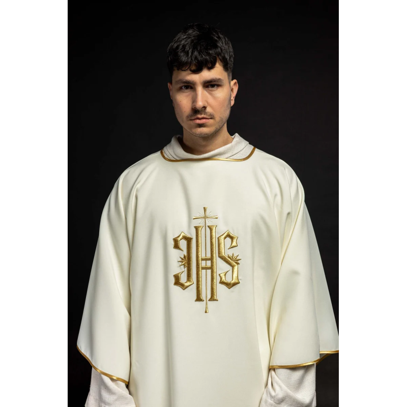 Dalmática gótica bordada na frente e atrás.