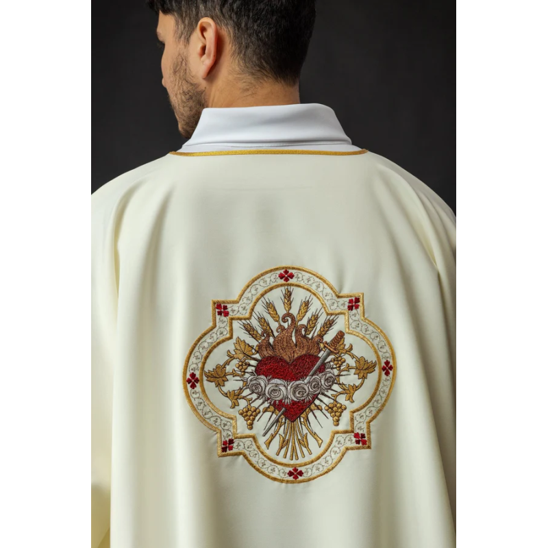 Casula gótica com bordado na frente e atrás e acabamento em cetim.