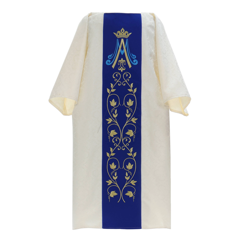 Dalmática gótica Mariana bordada na frente e atrás de altíssima qualidade.