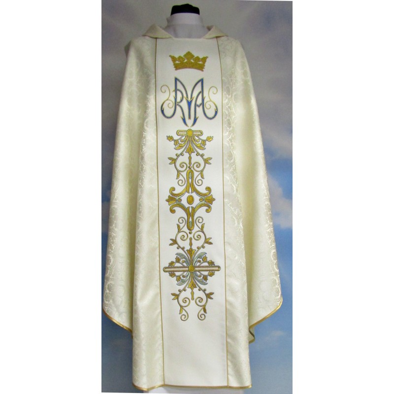 Casula gótica Mariana bordada na frente e atrás de altíssima qualidade.