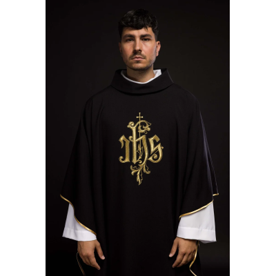 Casula gótica com bordado na frente e atrás.
