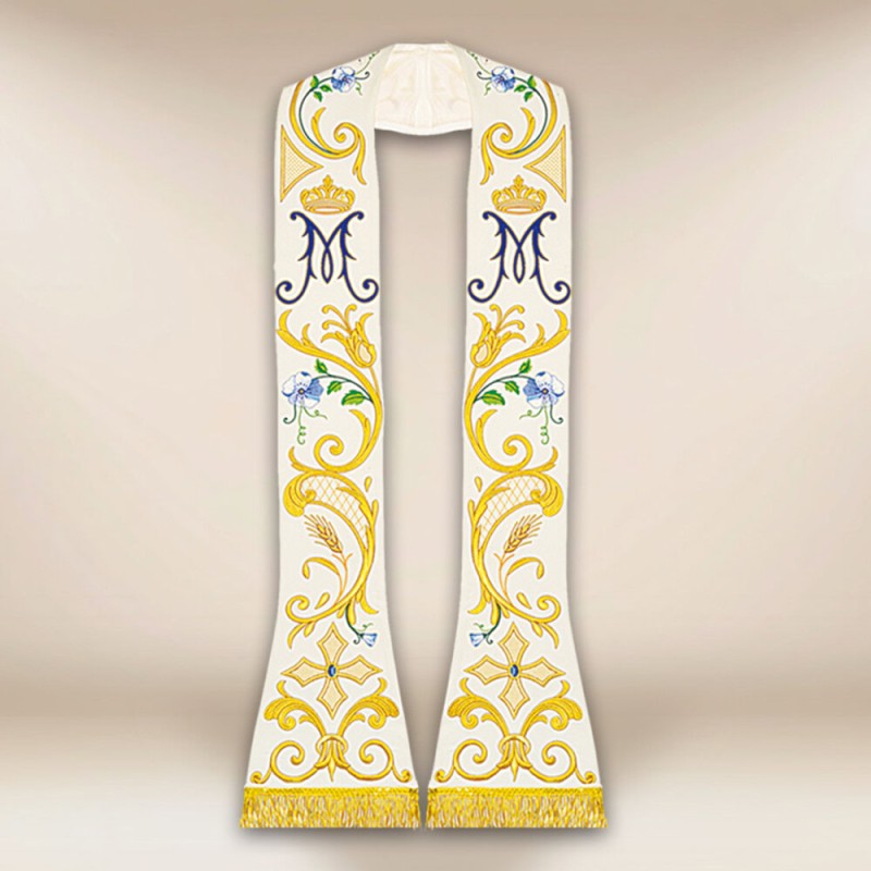 Estola romana bordada em alto relevo com linhas douradas.
