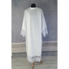 Alva tradicional com pregas. Zíper costurado na lateral, no ombro.
