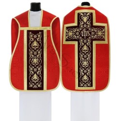 Casula romana bordada em alto relevo com linha dourada de altíssima qualidade.