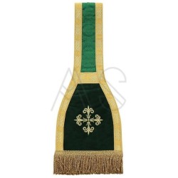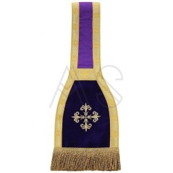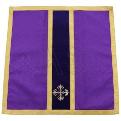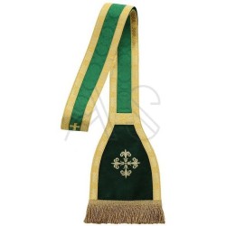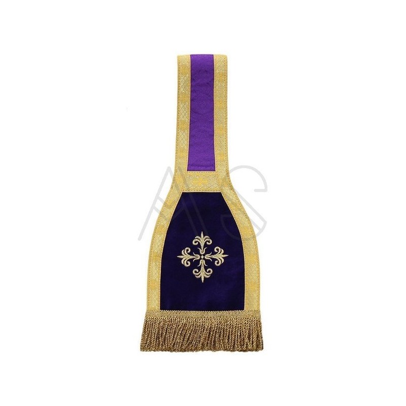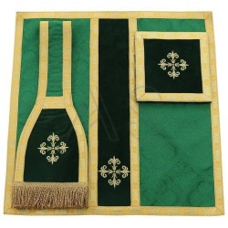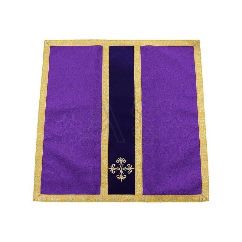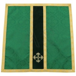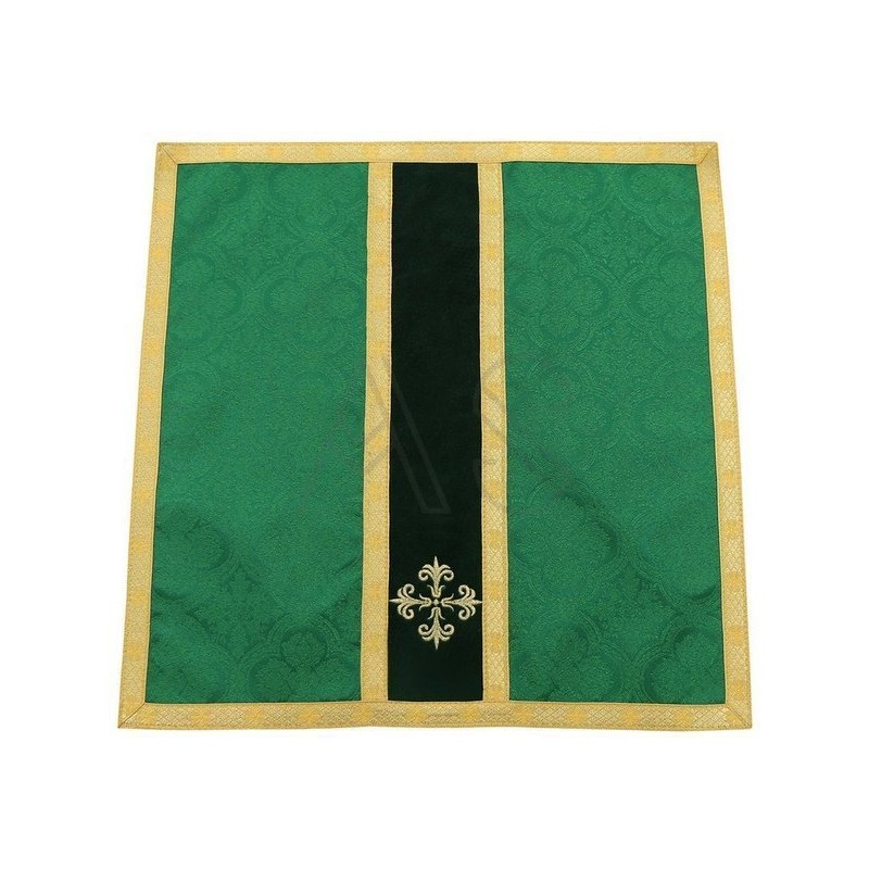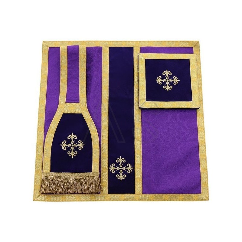 Acompanha uma estola, manípulo, bolsa corporal e véu de cálice.