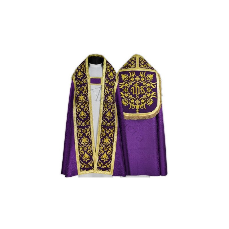 Casula gótica com bordado na frente e atrás.