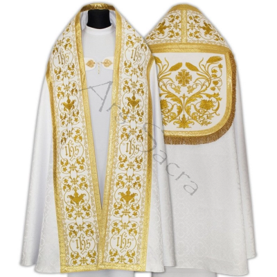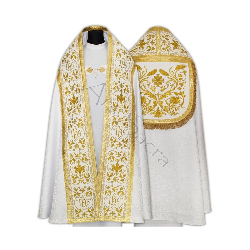 Capa de Asperge romana com bordados em veludo. Tecido Adamascado.