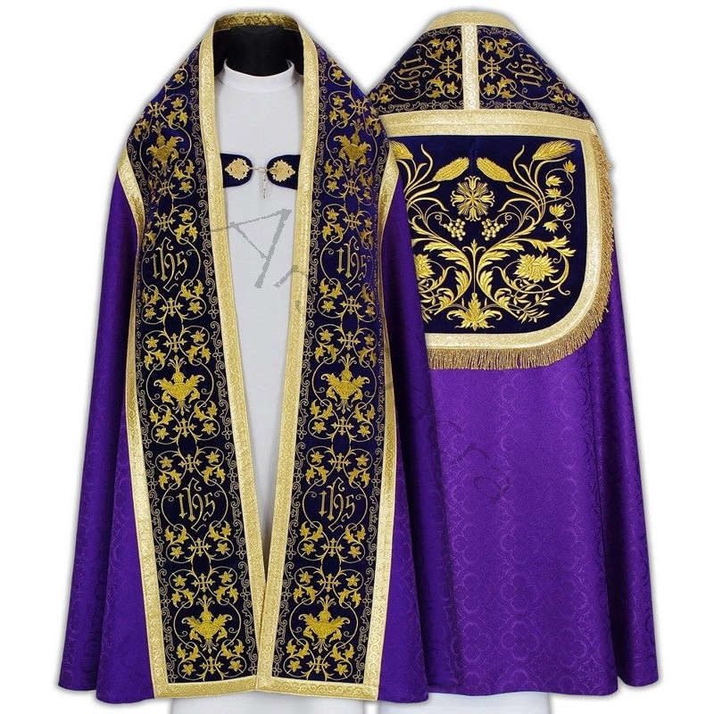 Capa de Asperge romana com bordados em veludo. Tecido Adamascado.