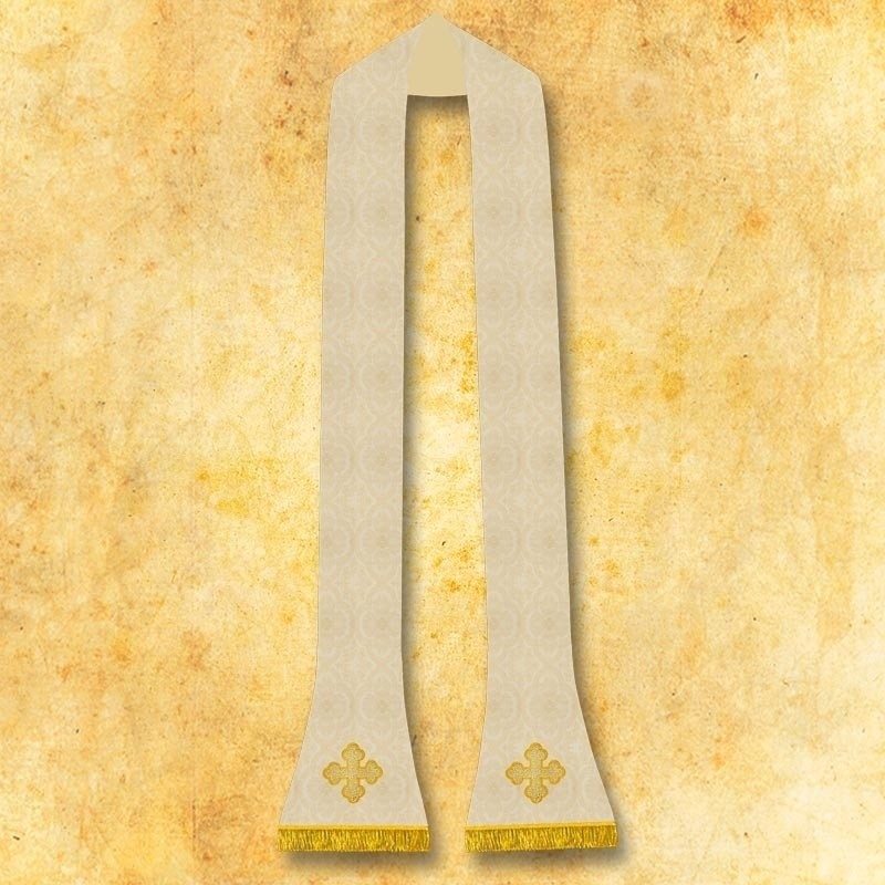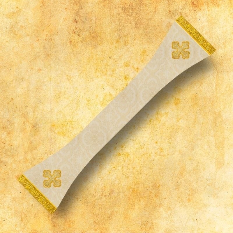 Acompanha uma estola, manípulo, véu para cálice e bolsa corporal.