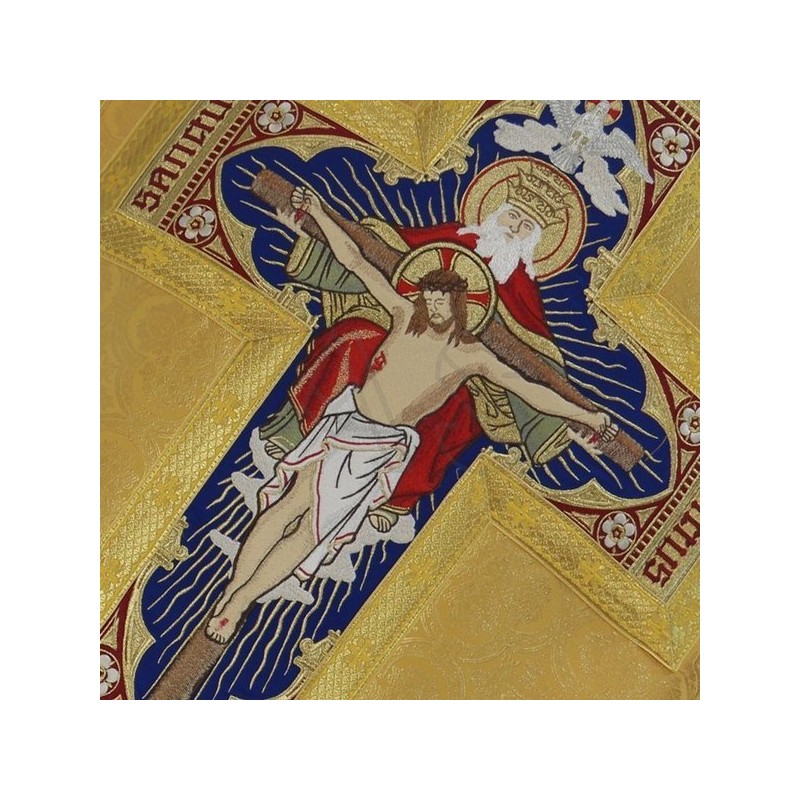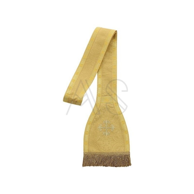 Acompanha uma estola, manípulo, bolsa corporal e véu de cálice.