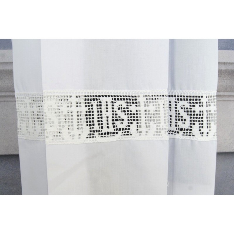 Túnica com pregas bordada com as letras JHS sobre a renda de altíssima qualidade.
