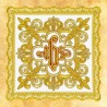 O bordado tem a imagem das letras JHS.