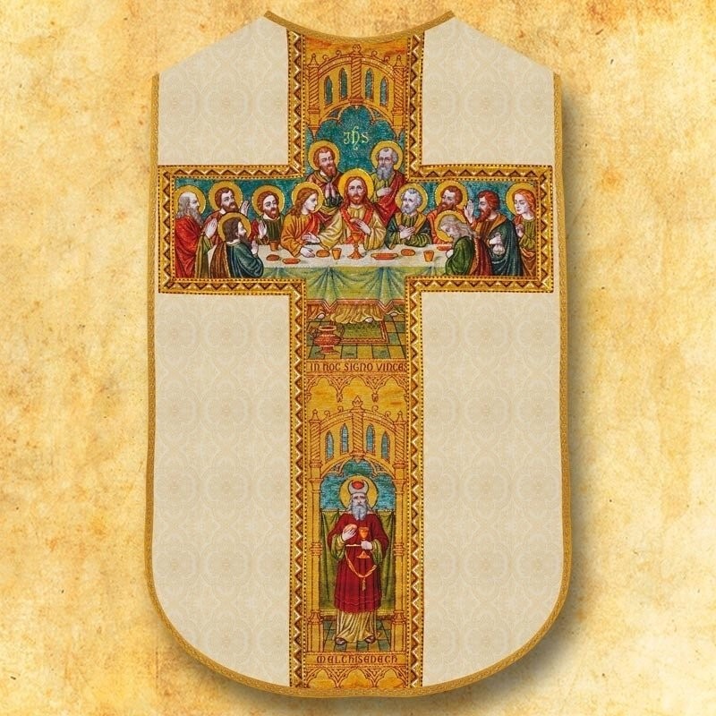 Casula romana com tecnologia moderna de transferência de fotos para o tecido na frente e atrás de altíssima qualidade.