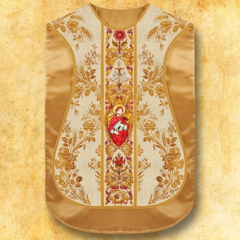 Casula romana com tecnologia moderna de transferência de fotos para o tecido na frente e atrás de altíssima qualidade.