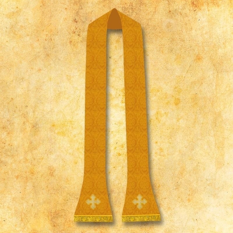 Acompanha uma estola, manípulo, véu para cálice e bolsa corporal.