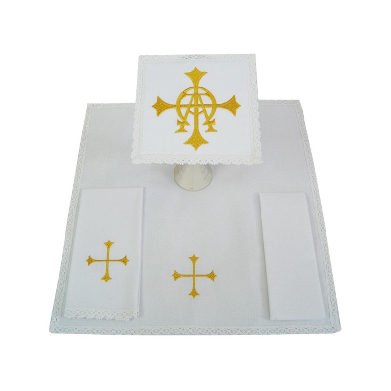 DIMENSÕES: PALA: 18CM X 18CM; BOLSA CORPORAL: 45CM X 45CM; VÉU DE CALICE: 45CM X 35CM