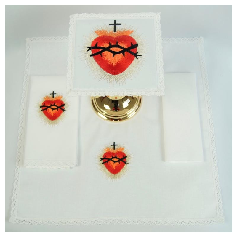 Alfaia bordada com a imagem do Sagrado Coração de Jesus.