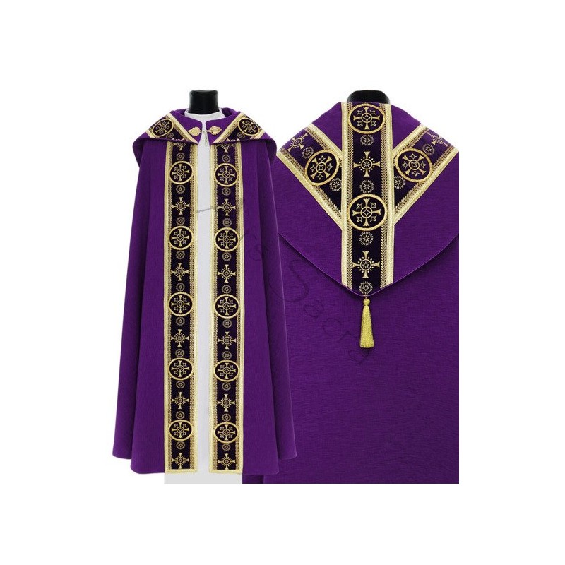 Capa de asperge gótica bordada na frente e atrás com linha dourada sobre o tecido de veludo de altíssima qualidade.