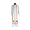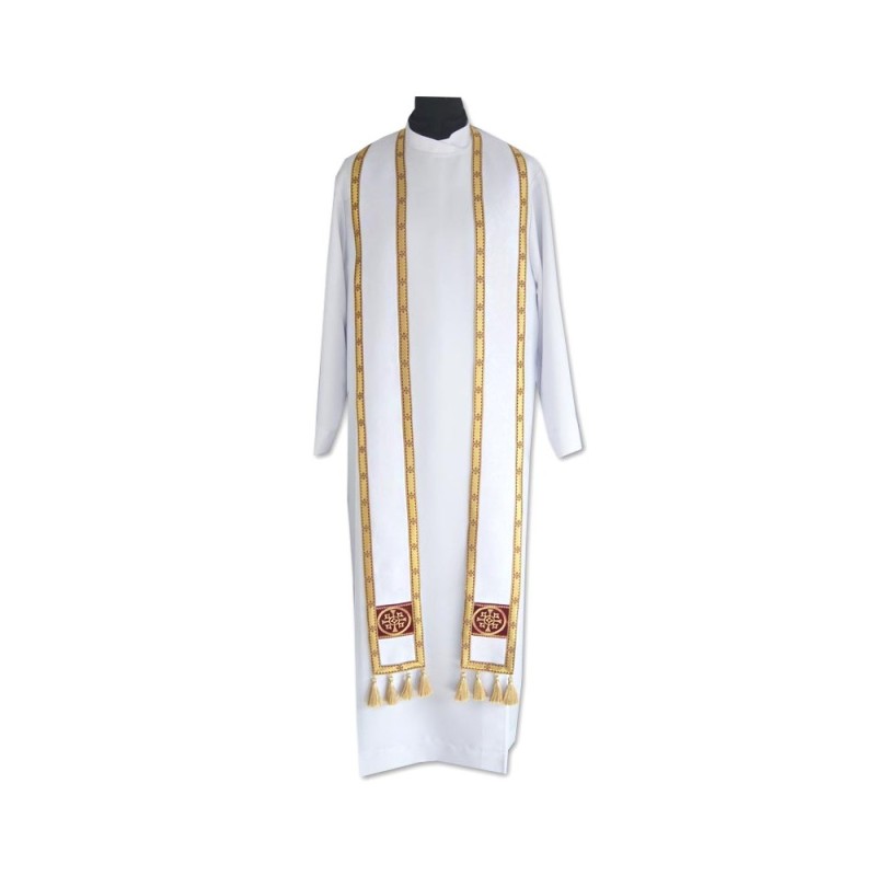 Acompanha uma estola com detalhe em veludo e fio dourado.