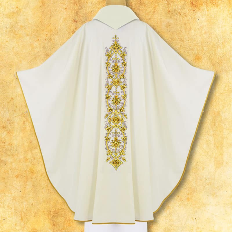 Casula gótica bordada na frente e atrás com fio dourado de altíssima qualidade.