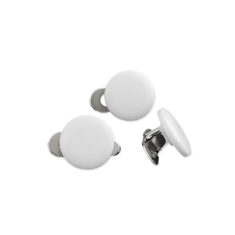 Fecho de metal com botão de pressão de plástico branco, produto italiano para colarinho de camisa clerical de altíssima qualidade.