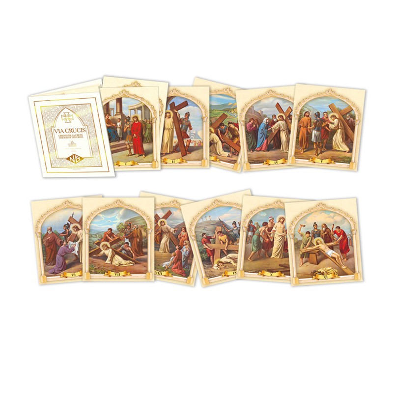 Conjunto da estação da Via Sacra, impresso no papel, produto italiano de altíssima qualidade.